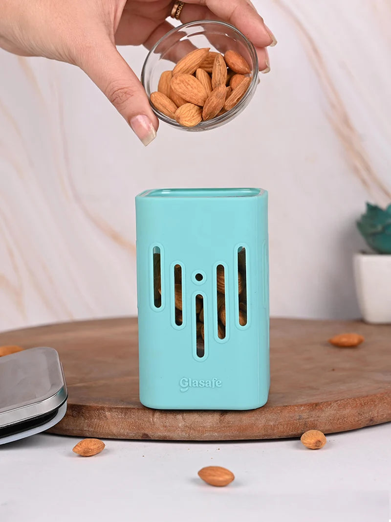 Our protective silicone sleeve is a crucial component that makes Glasafe glass storage containers safer, more durable, and simpler to use—it's not just a decorative accent. This is why it's revolutionary for food storage: