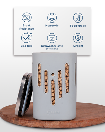 - Protective silicone sleeve that keeps your containers safe from bumps and drops.