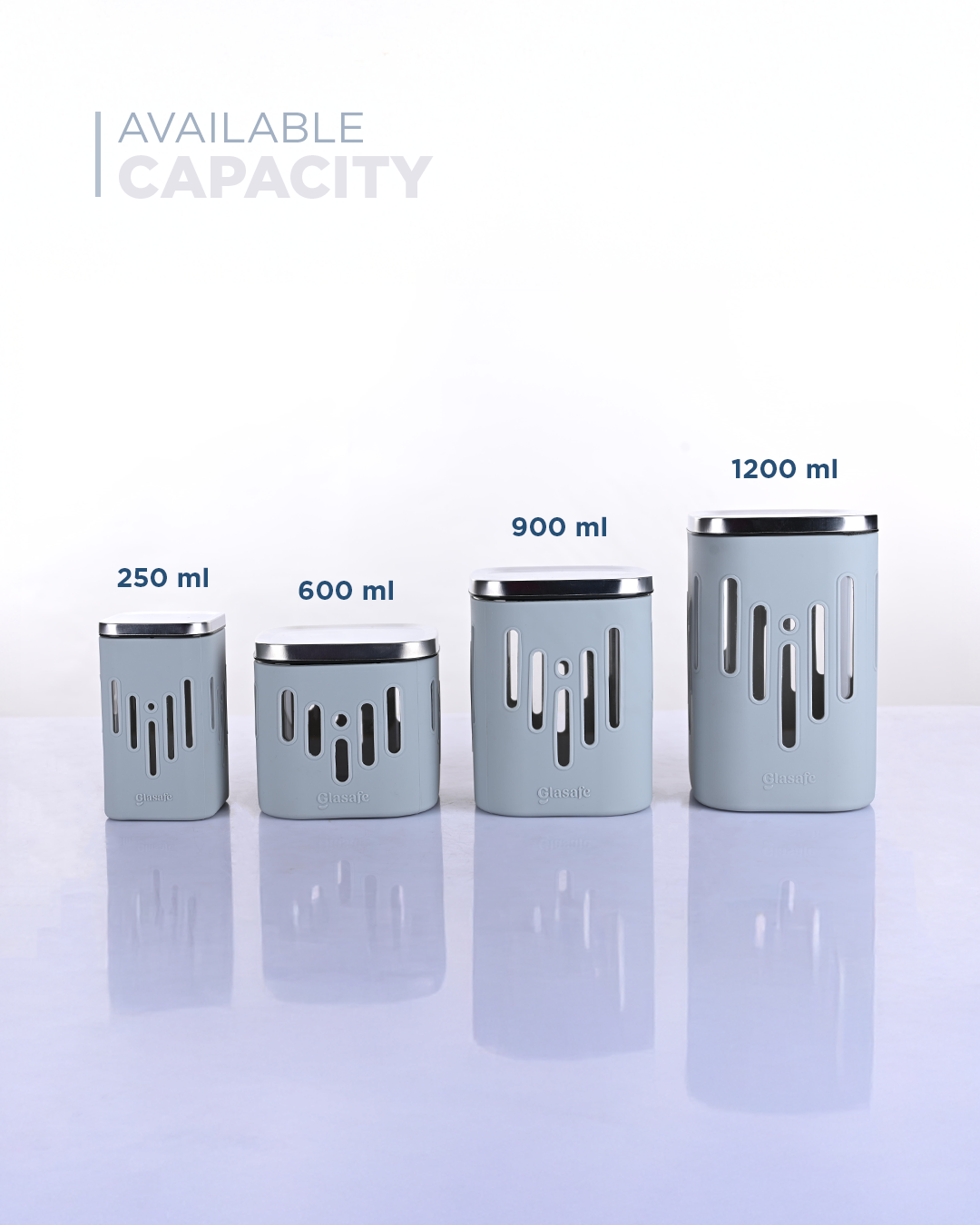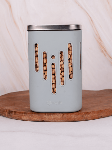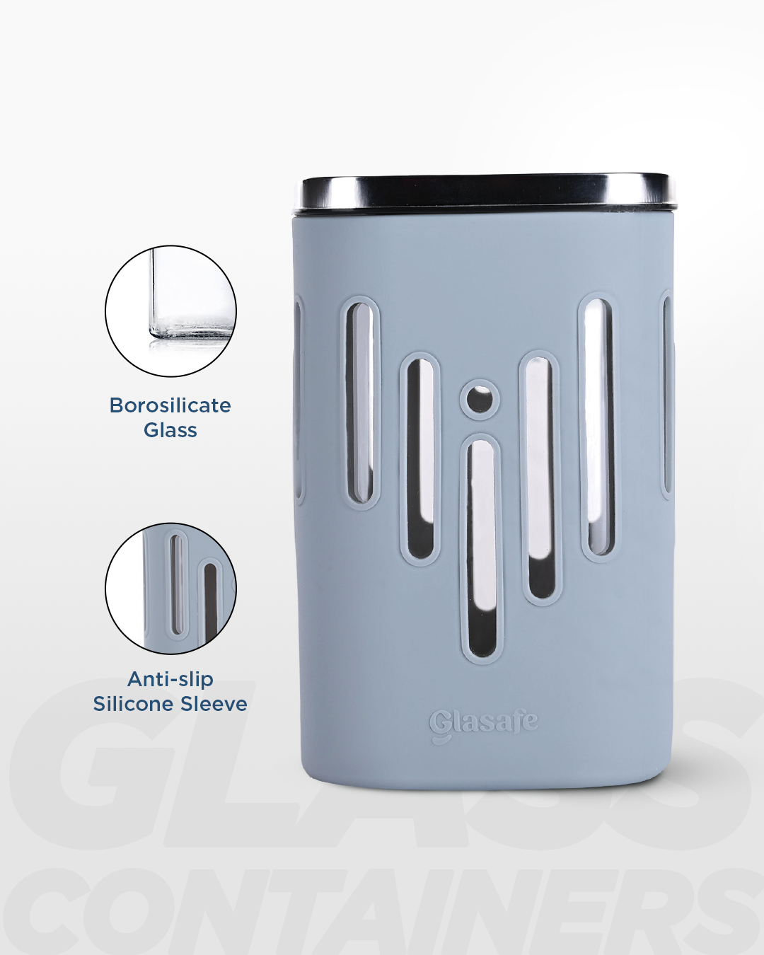 1200ml Borosilicate Glass Kitchen Container with Airtight Lid & Silicone Sleeve, Soothing Slate