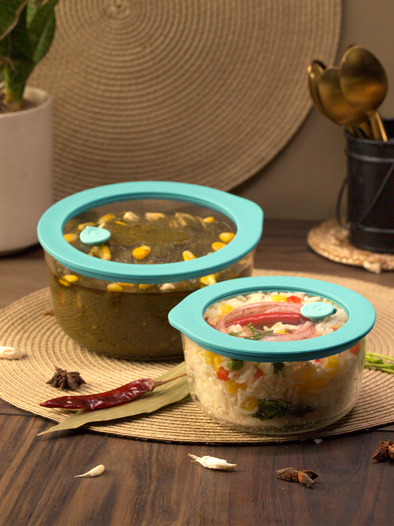 From storing pasta to keeping that chutney fresh, this 500ml + 950ml glass bowl set is the right multitasking buddy your fridge deserves. And yes, they stack up beautifully too and are 100% leak-proof.