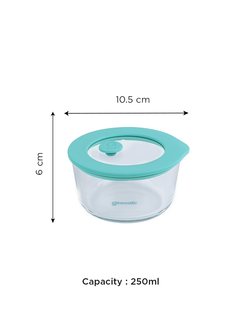 250ml Borosilicate Glass Bowl with Leak-Proof Lid and Air Vent, Mellow Mist