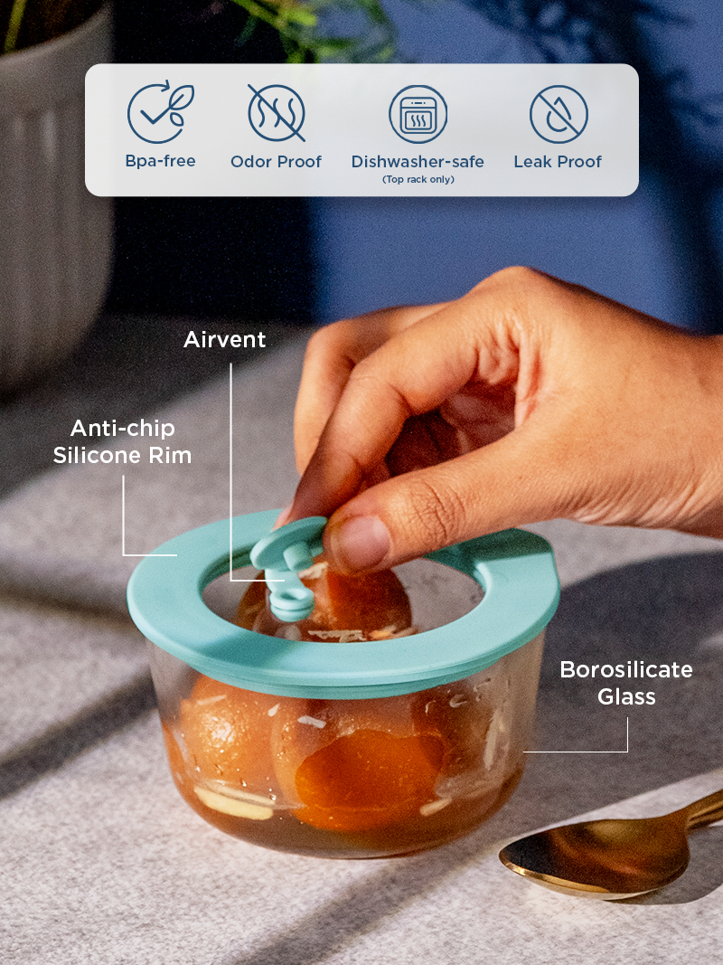 - Silicone Rim Lid with Air Vent: Tight seal with a smart air vent for safe reheating and fresh storage.
