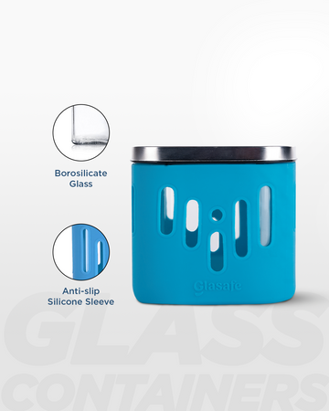 600ml Borosilicate Glass Jar For Kitchen with Airtight Lid & Protective Silicone Sleeve, Tranquil Teal