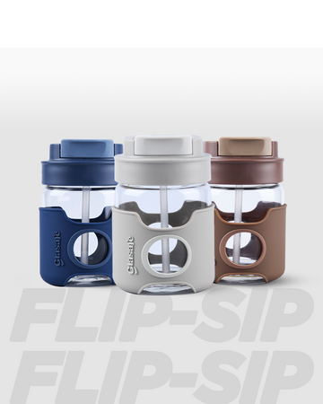 Borosilicate Glass Tumbler with Sipper & Chug Hole - 360ml (Taupe Grey)