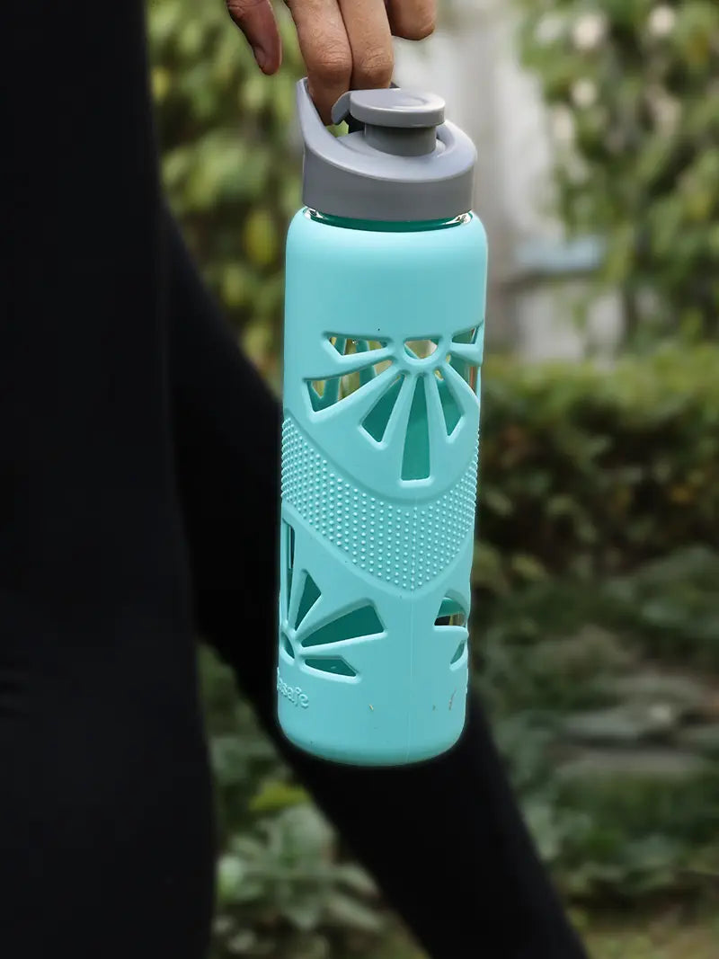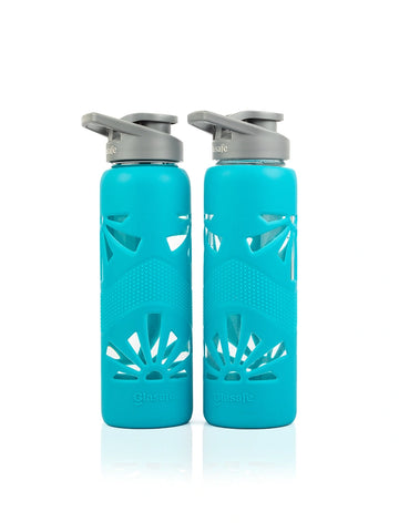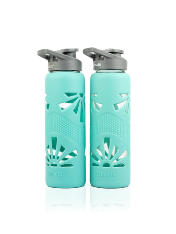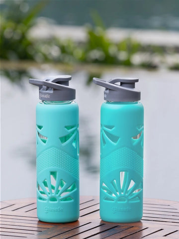 Set of 2 Borosilicate Glass Water Bottle with Protective Silicone Sleeve, 750ml (Green)