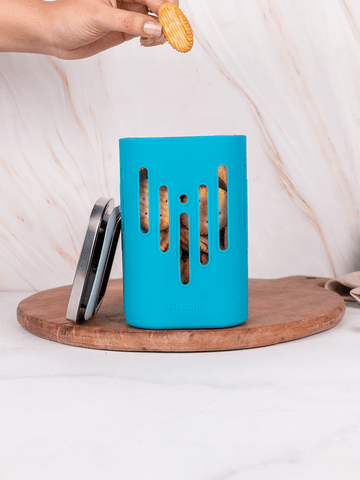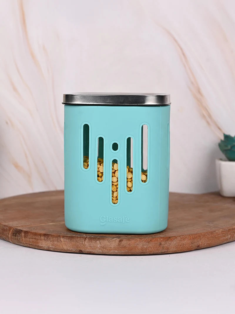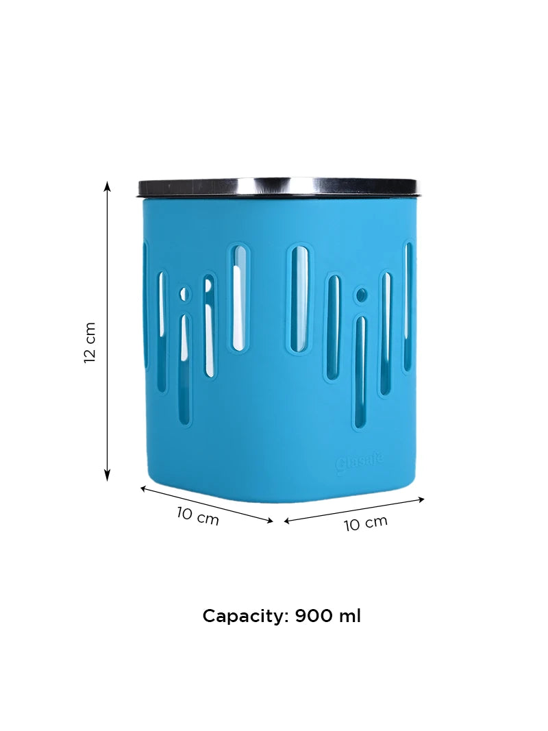 900ml Borosilicate Glass Kitchen Container with Airtight Lid & Silicone Sleeve - Tranquil Teal