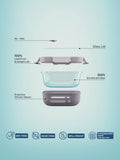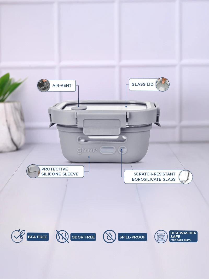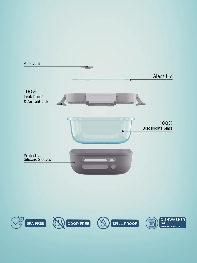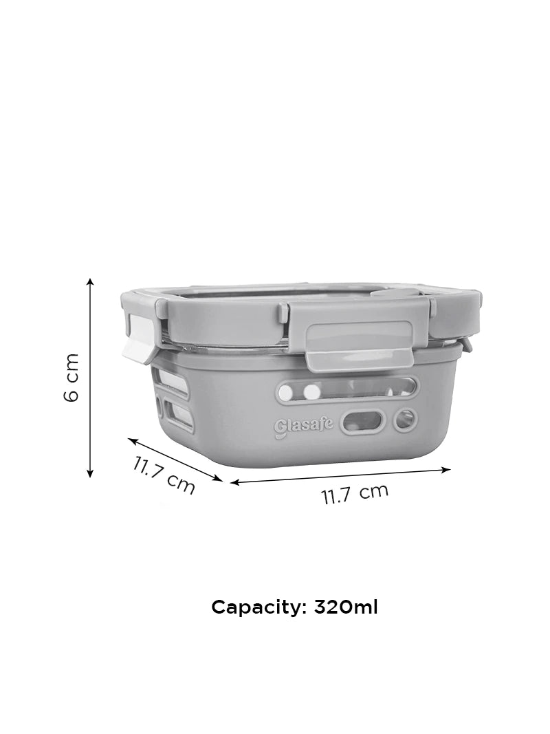 Set of 2 320ml Glass Lunch Box with Airtight Glass Lid & Silicone Cover, Soothing Slate