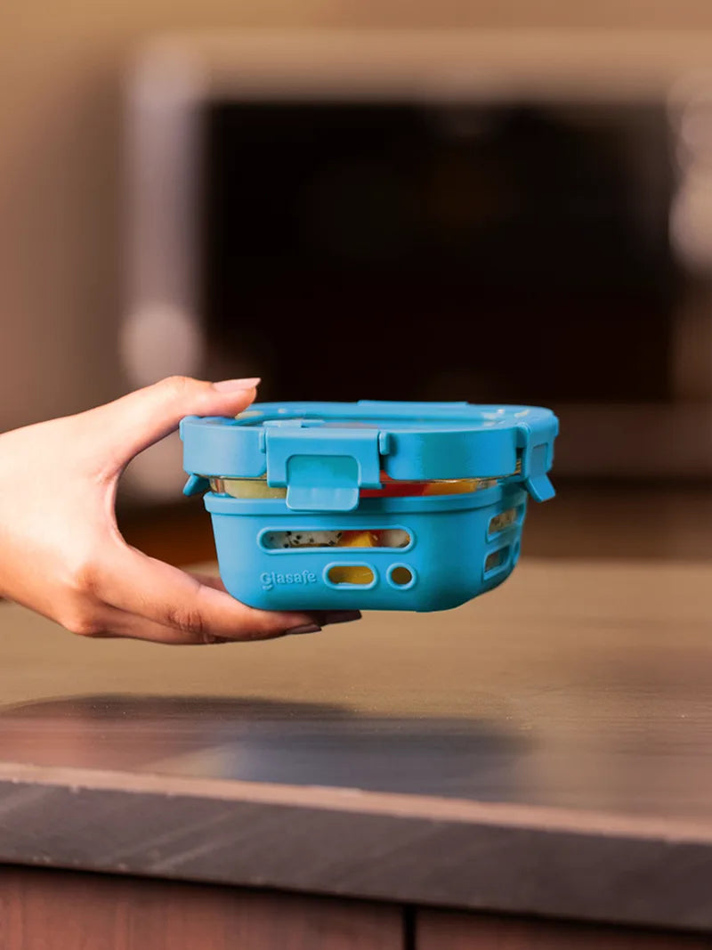 Glasafe 320ml Glass Salad Box with Airtight Glass Lid & Silicone Cover, Tranquil Teal