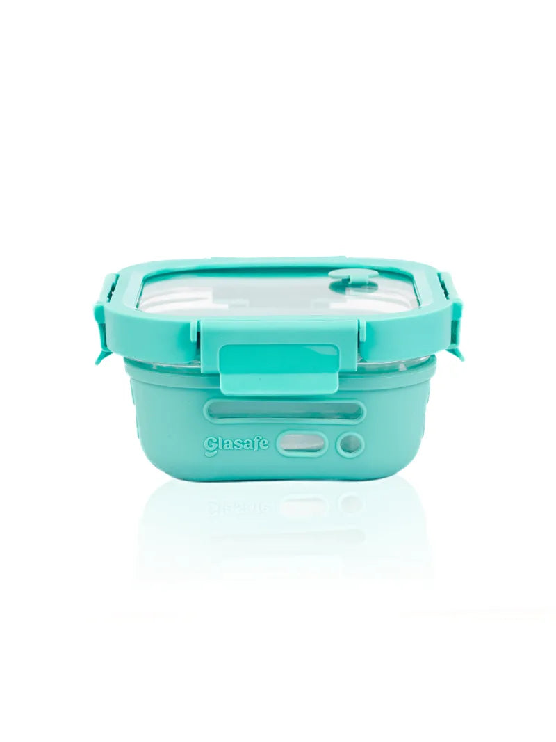 Glasafe 520ml Glass Tiffin Box with Airtight Glass Lid & Silicone Sleeve, Mellow Mist