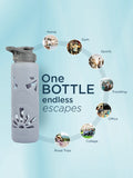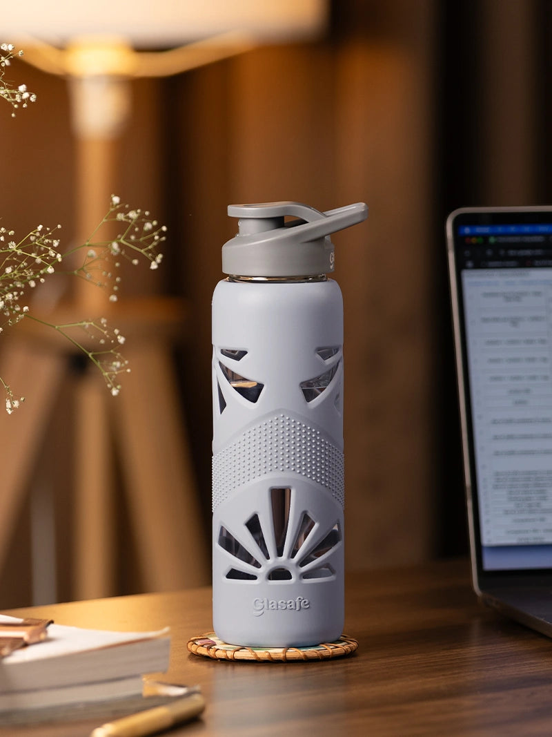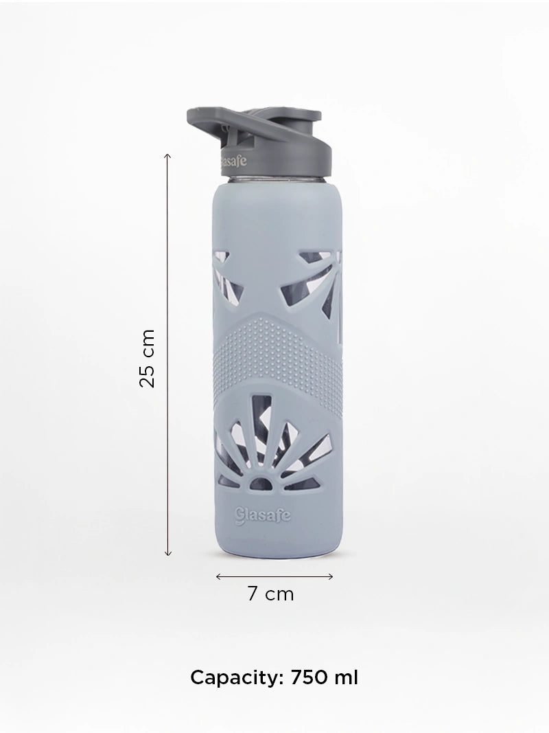 Glasafe Clear Grip Borosilicate Glass Water Bottle with Silicone Cover, 750ml (Soothing Slate)