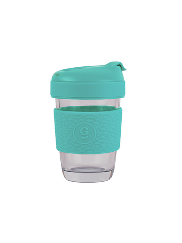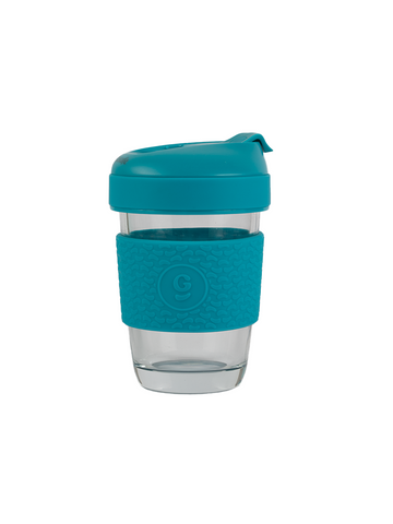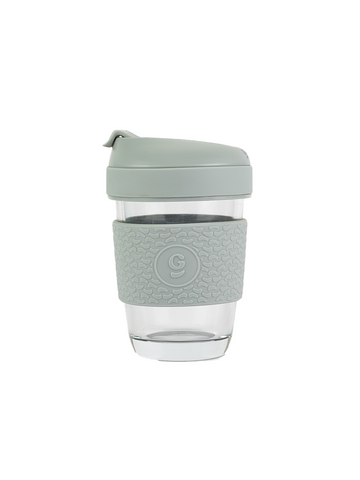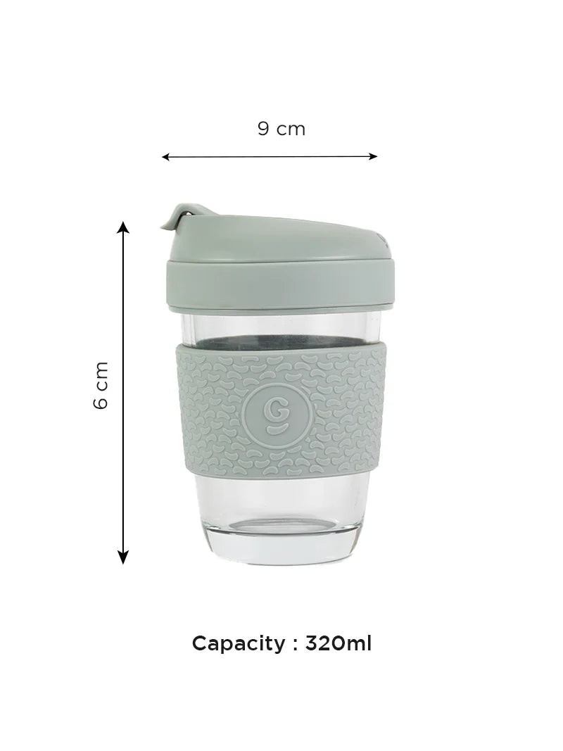 Borosilicate Glass Coffee Mug With Silicone Grip & Lid - 320ml (Soothing Slate)
