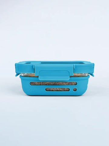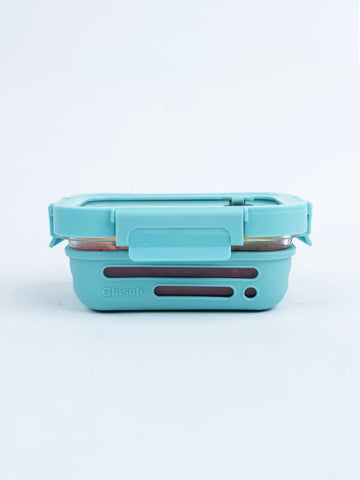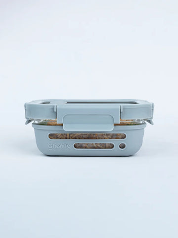 370ml Glass Tiffin Box for Office with Airtight Glass Lid & Silicone Sleeve, Soothing Slate