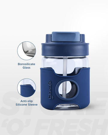 Made from premium borosilicate glass with a soft-touch silicone sleeve, this travel glass tumbler features a dual-function lid, sip or chug on the go. Stylish, spill-resistant, and built for everyday carry.