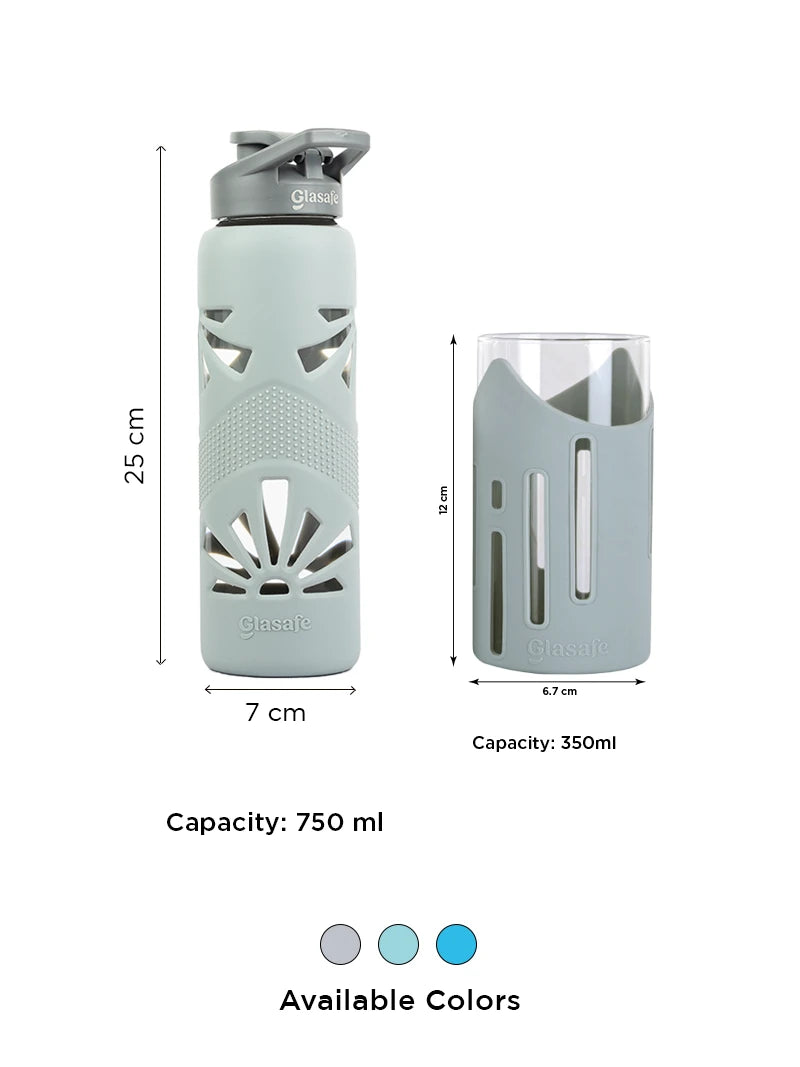 A borosilicate glass bottle with a pair of matching glasses—made for kitchen counters, work desks or dining tables. This set of a glass bottle and two matching glasses is your reminder to slow down and sip well. This drinkware set gives you that extra grip and everyday durability. It’s your hydration partner that feels as good as it looks.