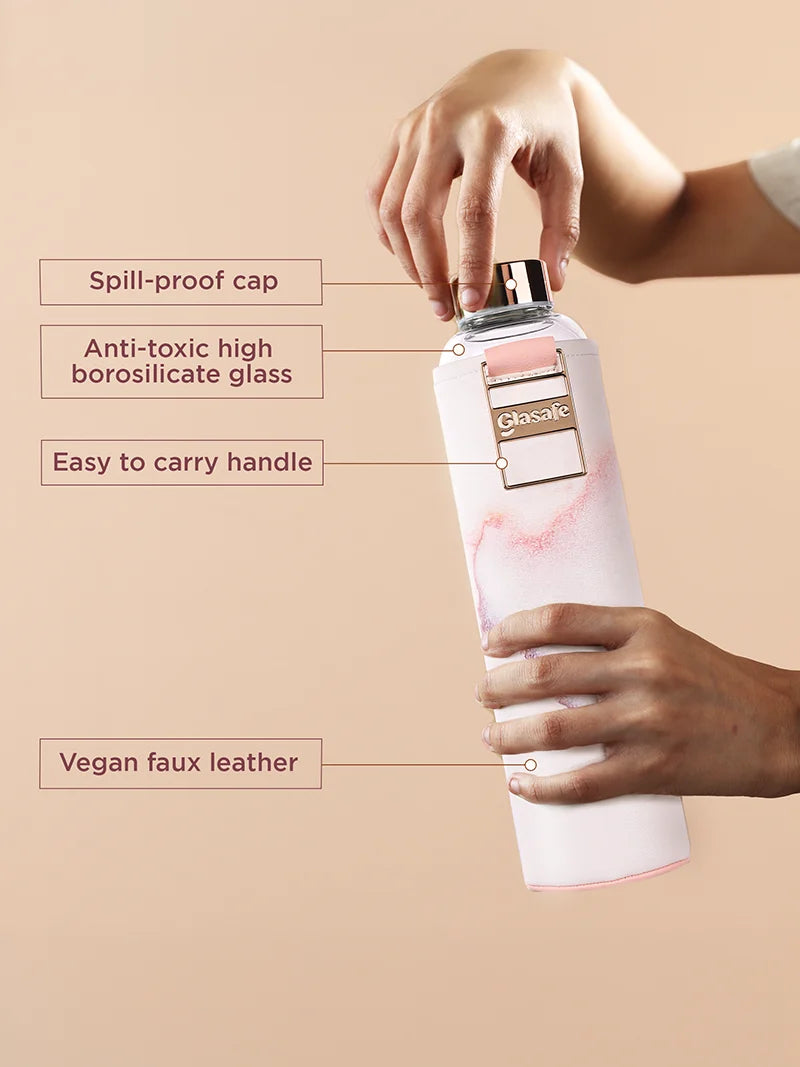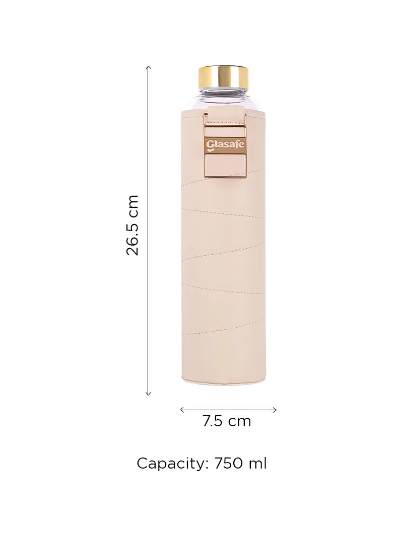 Vego Sip (Set of 2) Borosilicate Glass Bottle with Protective Vegan leather Sleeve - 750ml