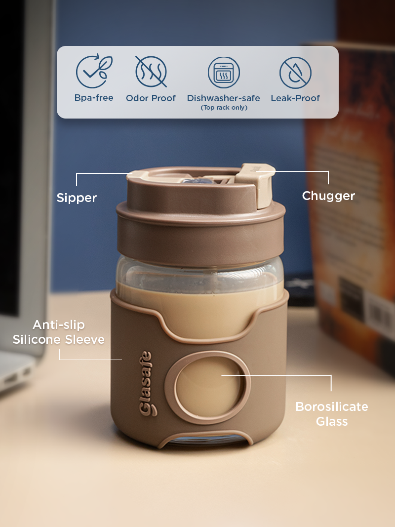 Borosilicate Glass Body: Tough, temperature-resistant glass that handles hot and cold drinks with ease.