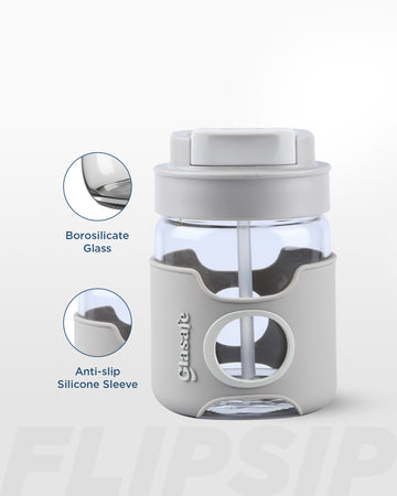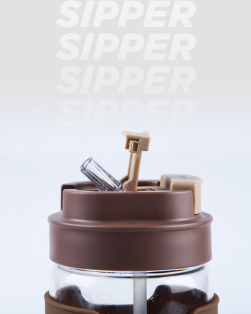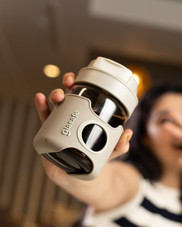 These aesthetic glass tumblers (set of 2) are made with durable borosilicate glass and feature a dual-drink lid for sipping or chugging, with heat-resistant silicone sleeves for 24x7 usage.
