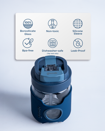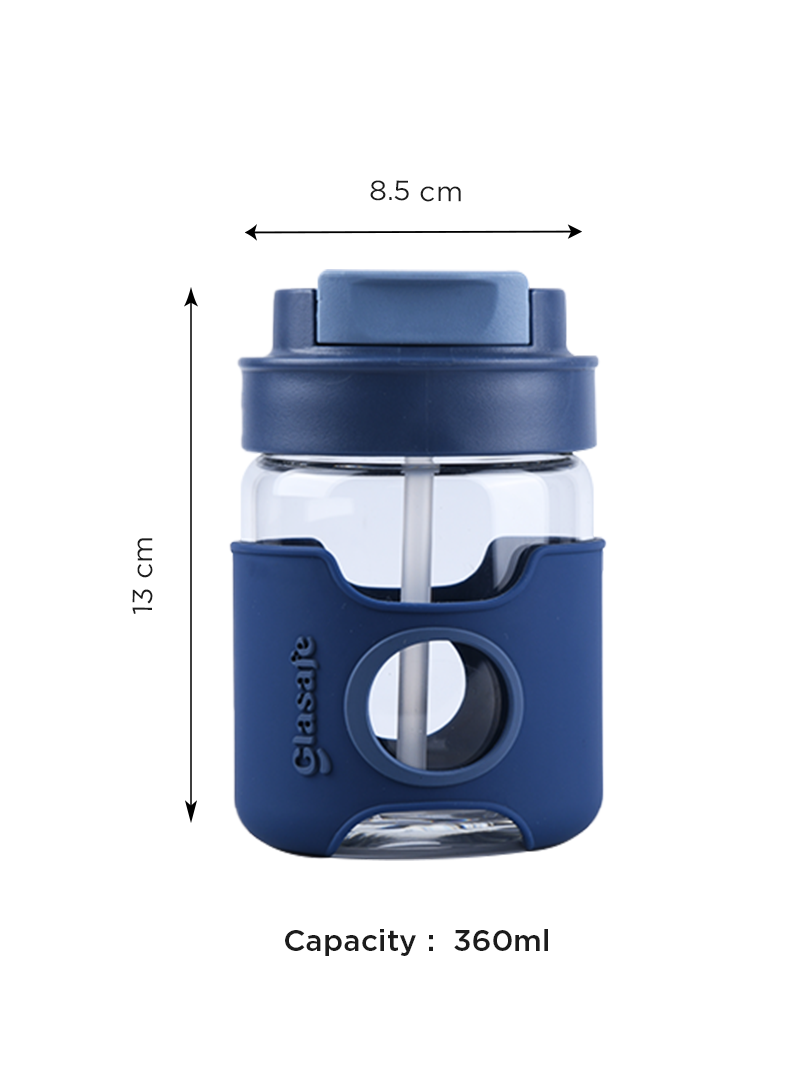 Set of 2 Glass Tumblers with Dual-Flip Lid & Silicone Cover - (360mlx2) (Grey, Blue)