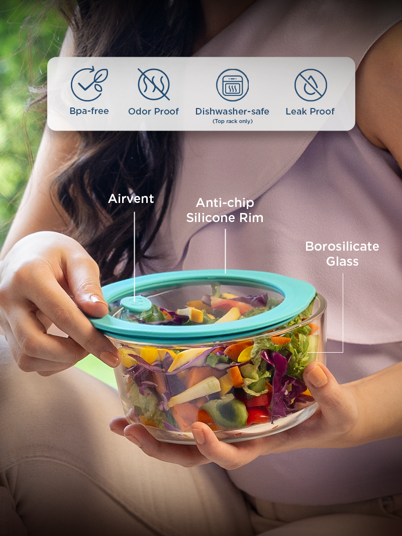 - Silicone Rim Lid with Air Vent: Tight seal with a smart air vent for safe reheating and fresh storage.