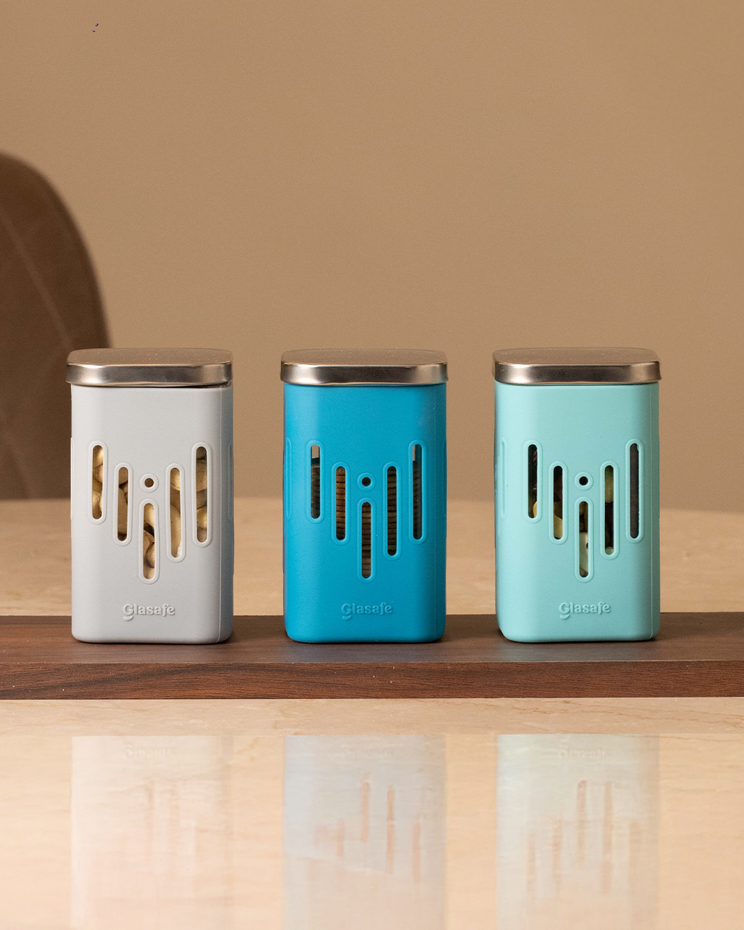 - Protective silicone sleeve that keeps your containers safe from bumps and drops.
