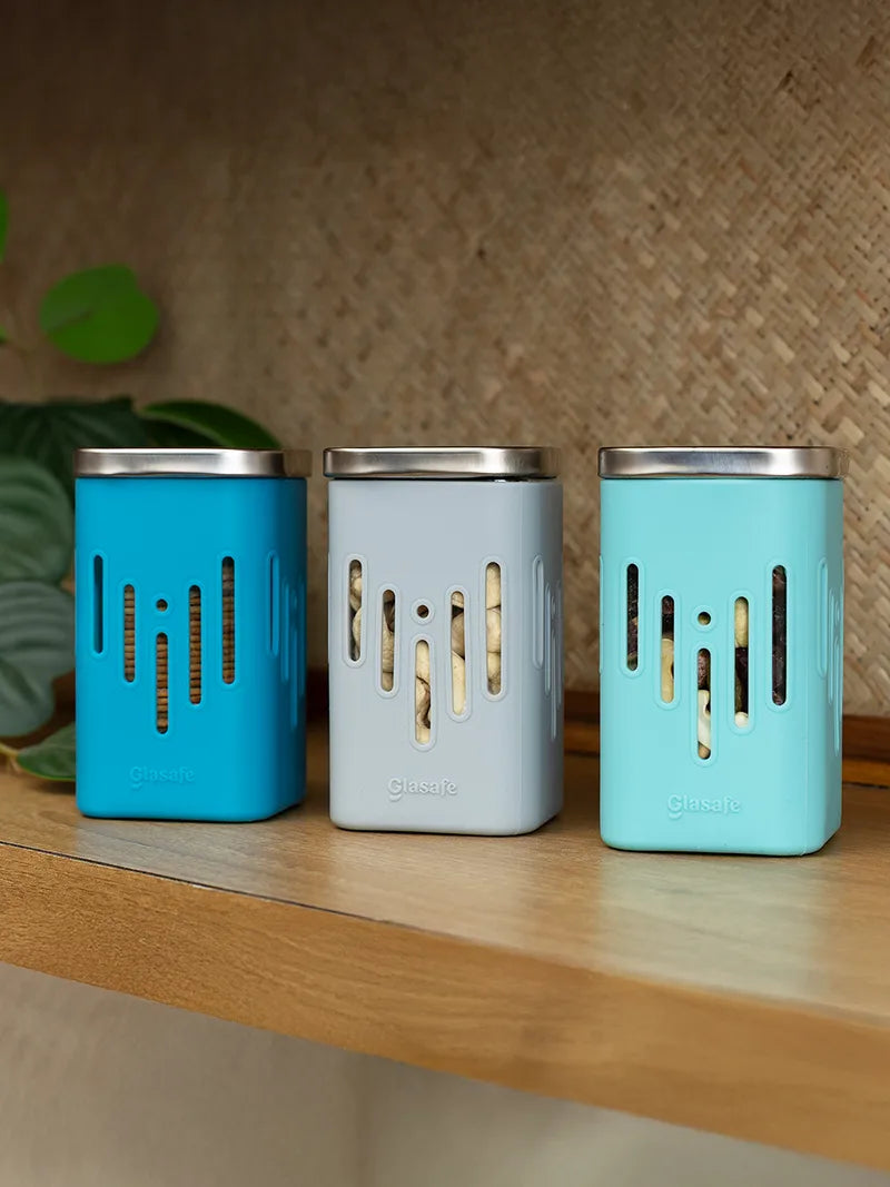Set Of 3 250ml Borosilicate Glass Kitchen Storage Container with Airtight Lid & Silicone Sleeve