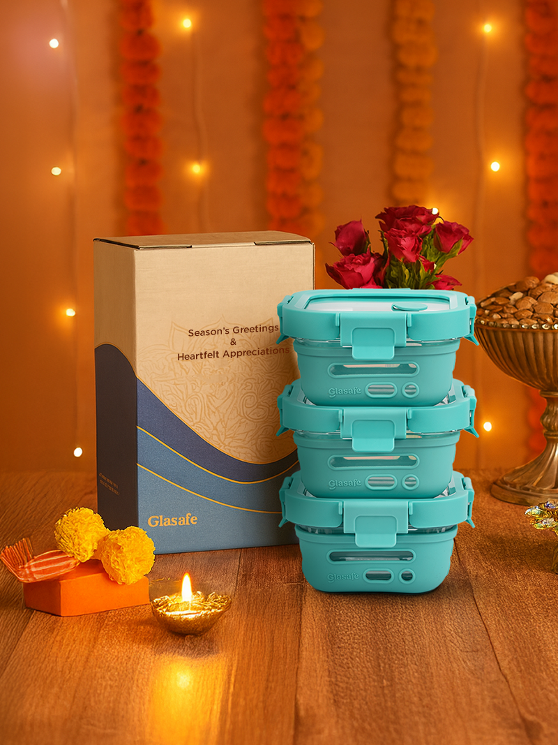 The trio that carries more than just meals. This festive hamper brings you three perfectly sized glass tiffins, crafted to make every lunch a little more delightful. Stacked in a premium box, it’s a thoughtful gift for anyone who believes that joy is best served in three portions.